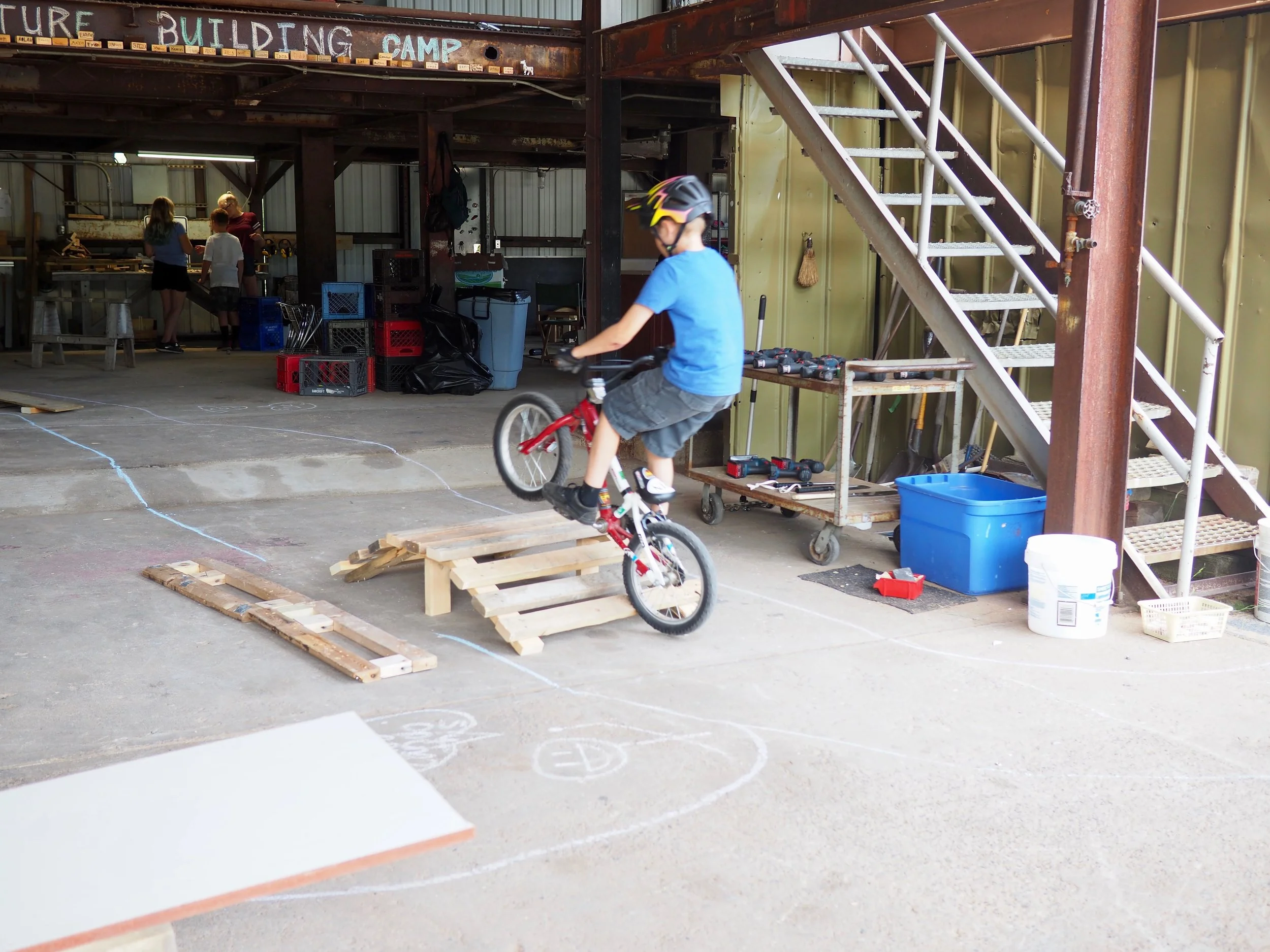 We spent the afternoon riding and testing the placement of features. Cool chalk drawings were also added throughout the course!